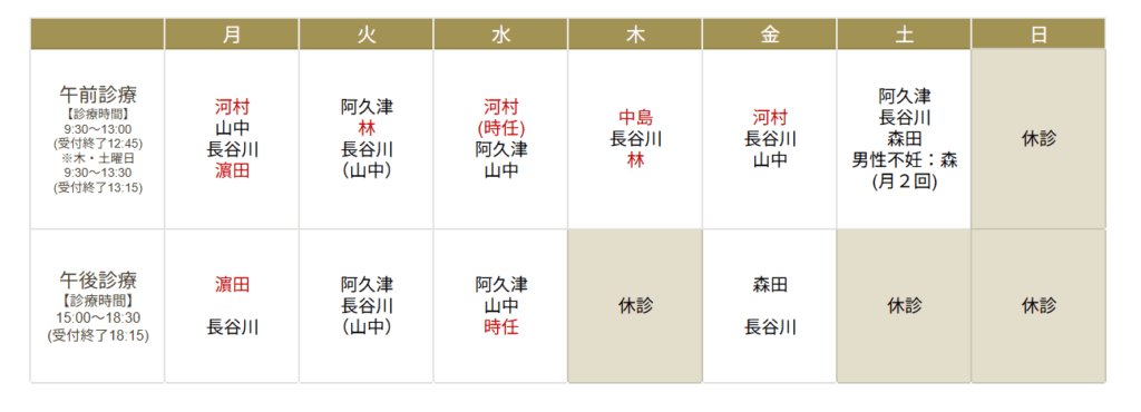 ◆都合により担当医変更の場合があります 今月の担当医表はこちら