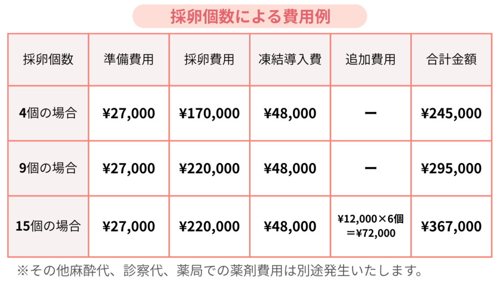 • 別途費用について:排卵誘発剤費や麻酔代などが別途かかります。