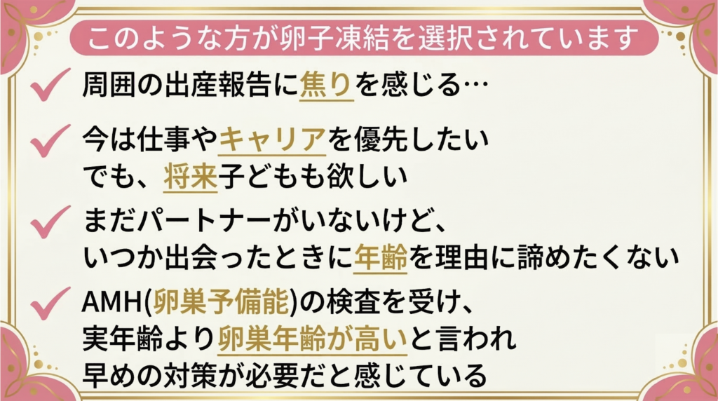 「自分のキャリアやライフプランを大切にしながら、将来の妊娠の可能性も確保しておきたい」