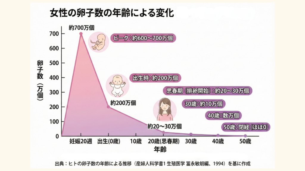 実は、女性は生まれた時点で卵子の数が決まっていて、新しく作られることはありません。