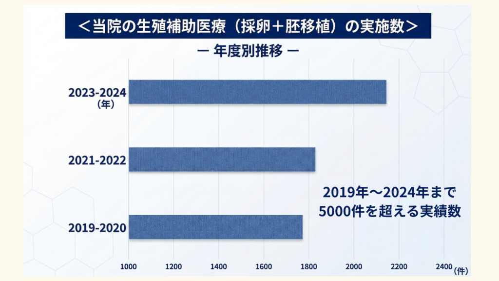 当院は開院以来20年で採卵数9,000件以上、3,000名以上の妊娠実績がございます。